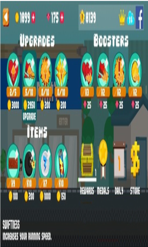 在充满现代都市风格的场景中,狡猾的盗贼会沿途抛掷各类干扰道具。当遇到红色炸弹需立即闪避,而彩色糖果则能提供加速效果。游戏独创道具收集系统,角色可通过拾取板砖进行远程攻击,特殊状态下还能触发超级加速,让玩家体验多维度的策略对抗。