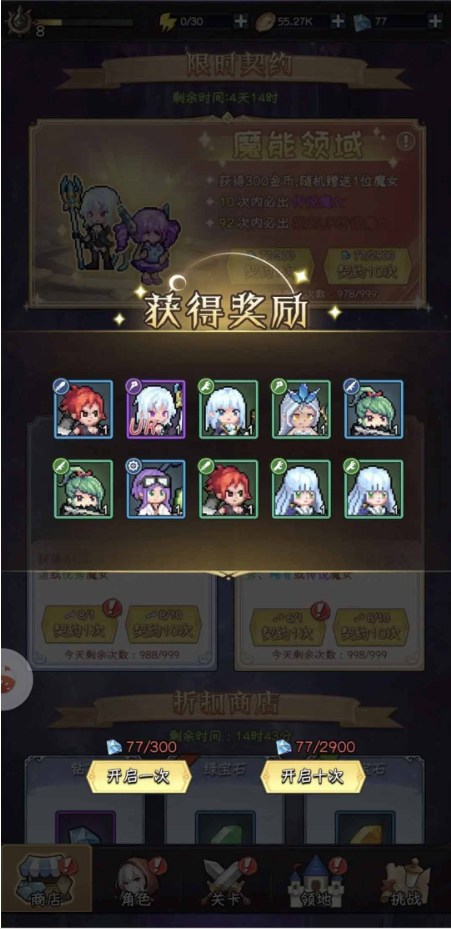 666666:突破石×50、高阶召唤契约×1、普通召唤契约×1、钻石×100