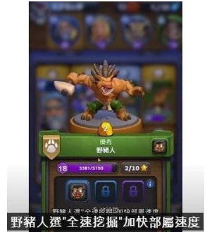 野猪人应选择"全速挖掘"天赋,加快部署速度。由于野猪人挖掘过程中易受攻击,加速完成可更快投入战斗输出。