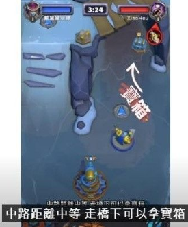 中路距离中等,桥下路径可获取宝箱资源。
