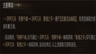 1. 保底机制继承规则:本活动属于武器活动唤取分类,同类唤取的保底次数可累计继承
